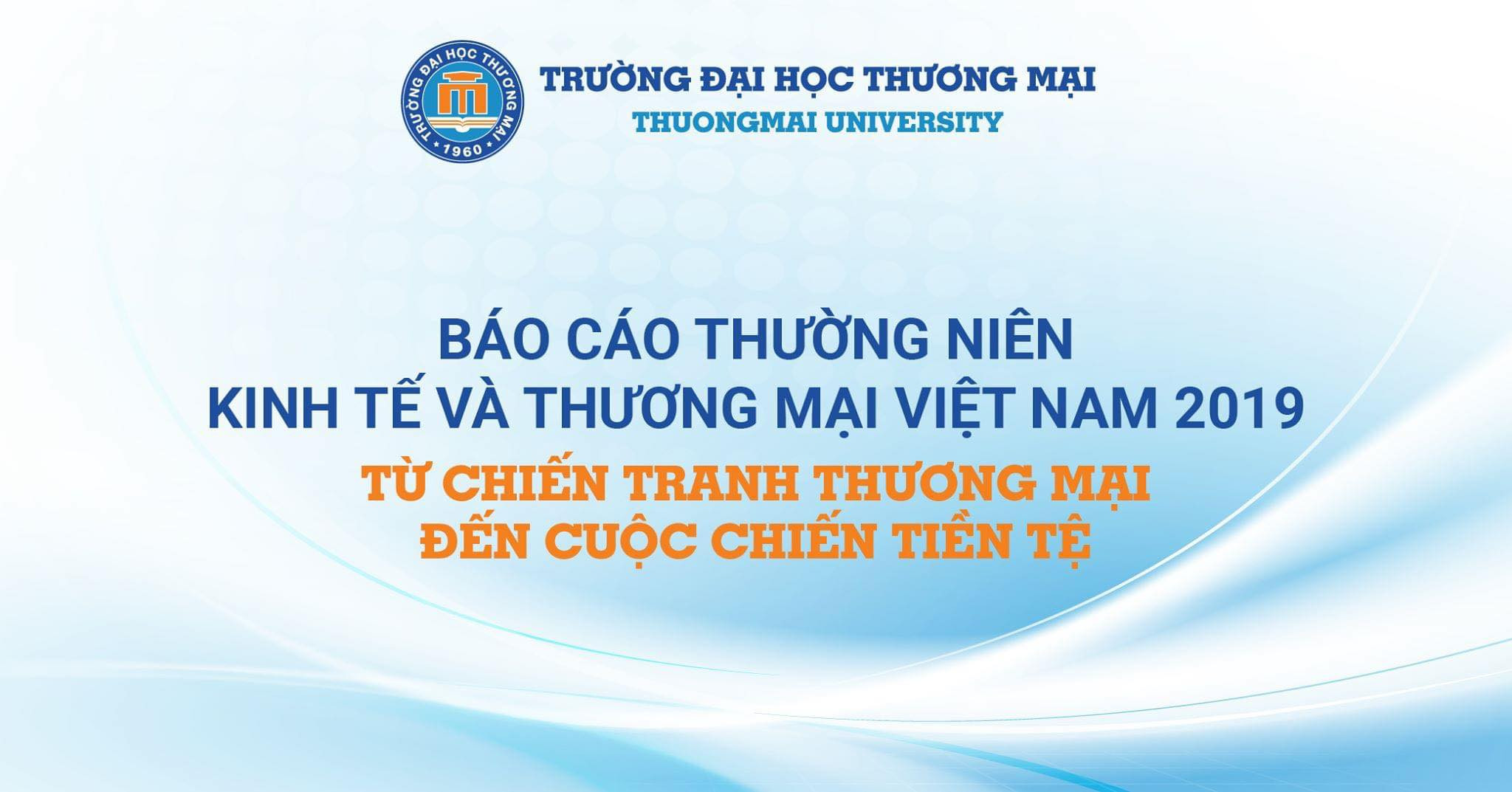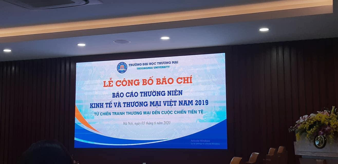 8h00 ngày 03/6/2020, tại phòng Hội thảo số 1 tầng 6 nhà F, Trường Đại học Thương mại tổ chức buổi lễ công bố báo chí Báo cáo thường niên Kinh tế và Thương mại Việt Nam 2019: “Từ chiến tranh Thương mại đến cuộc chiến tiền tệ”.