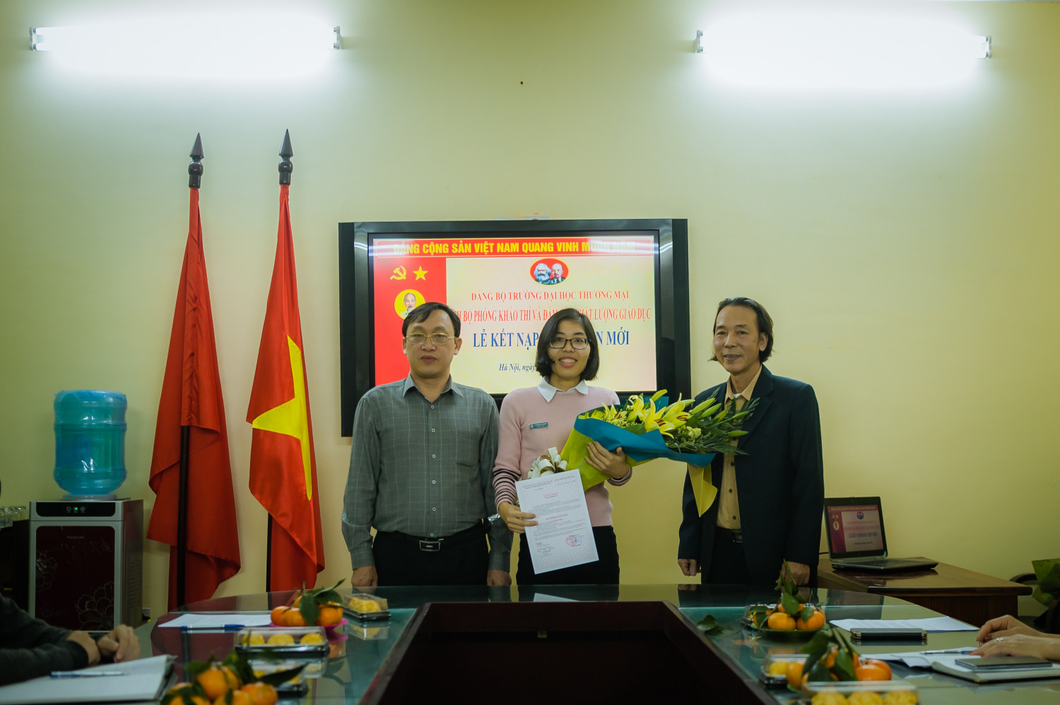 Cùng ngày, đồng chí Nguyễn Đức Nhuận, Bí thư Chi bộ thay mặt chi bộ phòng cũng đã tổ chức Lễ trao quyết định Công nhận đảng viên chính thức của Đảng ủy trường Đại học Thương mại cho hai đảng viên dự bị Nguyễn Trung Hải và Đặng Thị Hải Hằng.