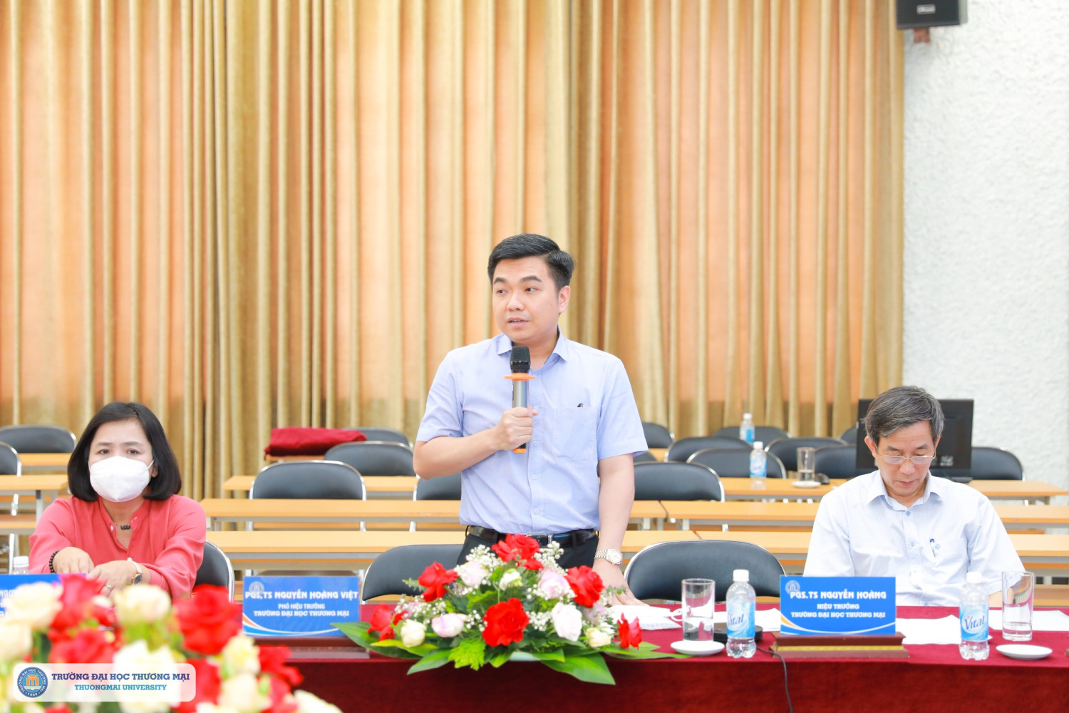 Tiếp và làm việc với Đoàn ĐGN, về phía Trường Đại học Thương mại có PGS, TS Nguyễn Hoàng – Hiệu trưởng Nhà trường; PGS, TS Nguyễn Hoàng Việt – Phó Hiệu trưởng Nhà trường; PGS, TS Nguyễn Thị Bích Loan – Phó Hiệu trưởng; PGS,TS Đỗ Minh Thành – Phó Hiệu trưởng; PGS, TS Nguyễn Viết Thái – Chủ tịch Công đoàn trường; TS, Phan Thu Trang – Bí thư Đoàn TNCSHCM; Trưởng các khoa chuyên ngành và Trưởng các phòng ban thuộc Trường.