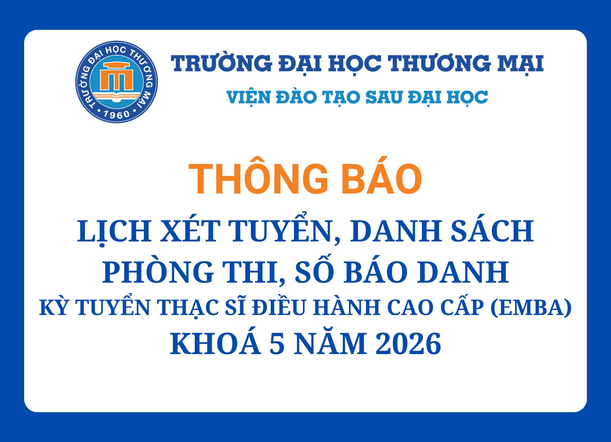 - Trang thông tin điện tử Trường Đại học Thương mại: https://tmu.edu.vn hoặc trang thông tin điện tử Viện Đào tạo Sau đại học: https://saudaihoc.tmu.edu.vn.