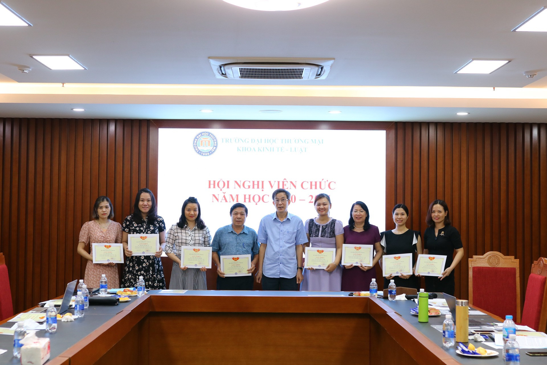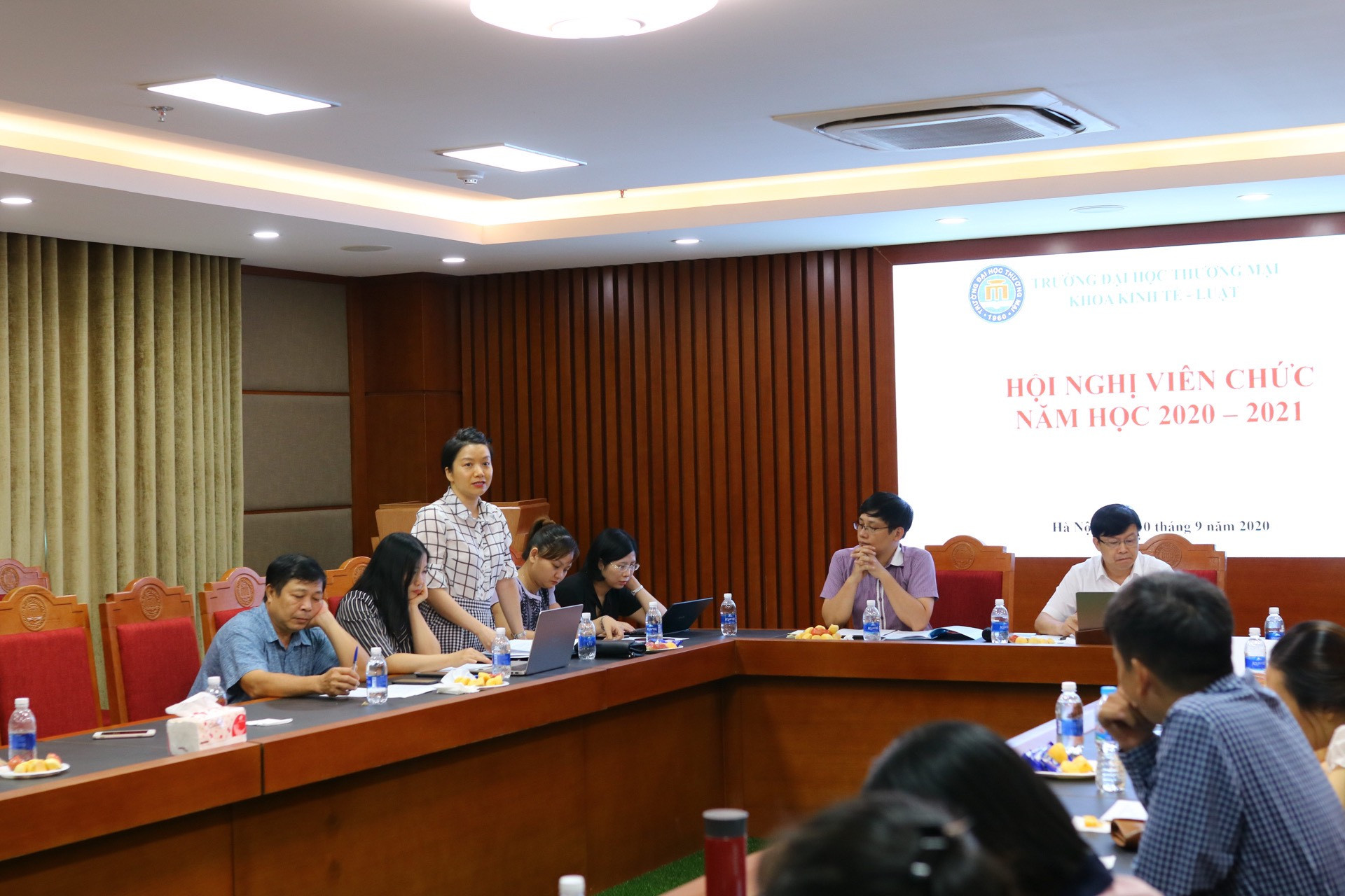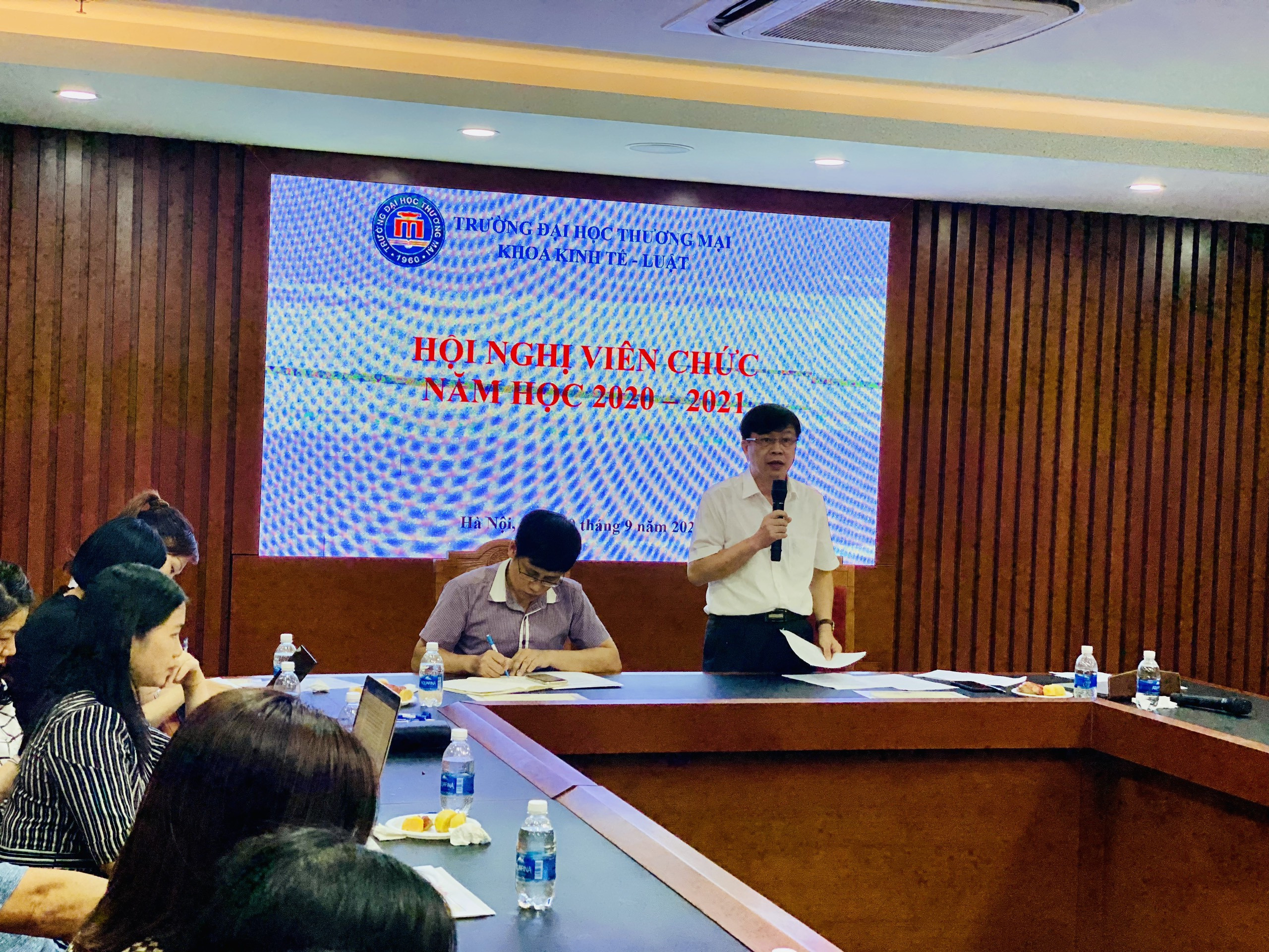 Thực hiện kế hoạch tổ chức hội nghị công chức, viên chức trường Đại học Thương mại năm học 2020-2021, theo kế hoạch số 621/KH-ĐHTM ngày 21/072020; được sự chỉ đạo của Đảng ủy, BGH nhà trường, vào hồi 14h00 ngày 10/09/2020 tại phòng họp số 2 nhà F, Khoa Kinh tế - Luật đã tổ chức Hội nghị cán bộ viên chức năm học 2020-2021.