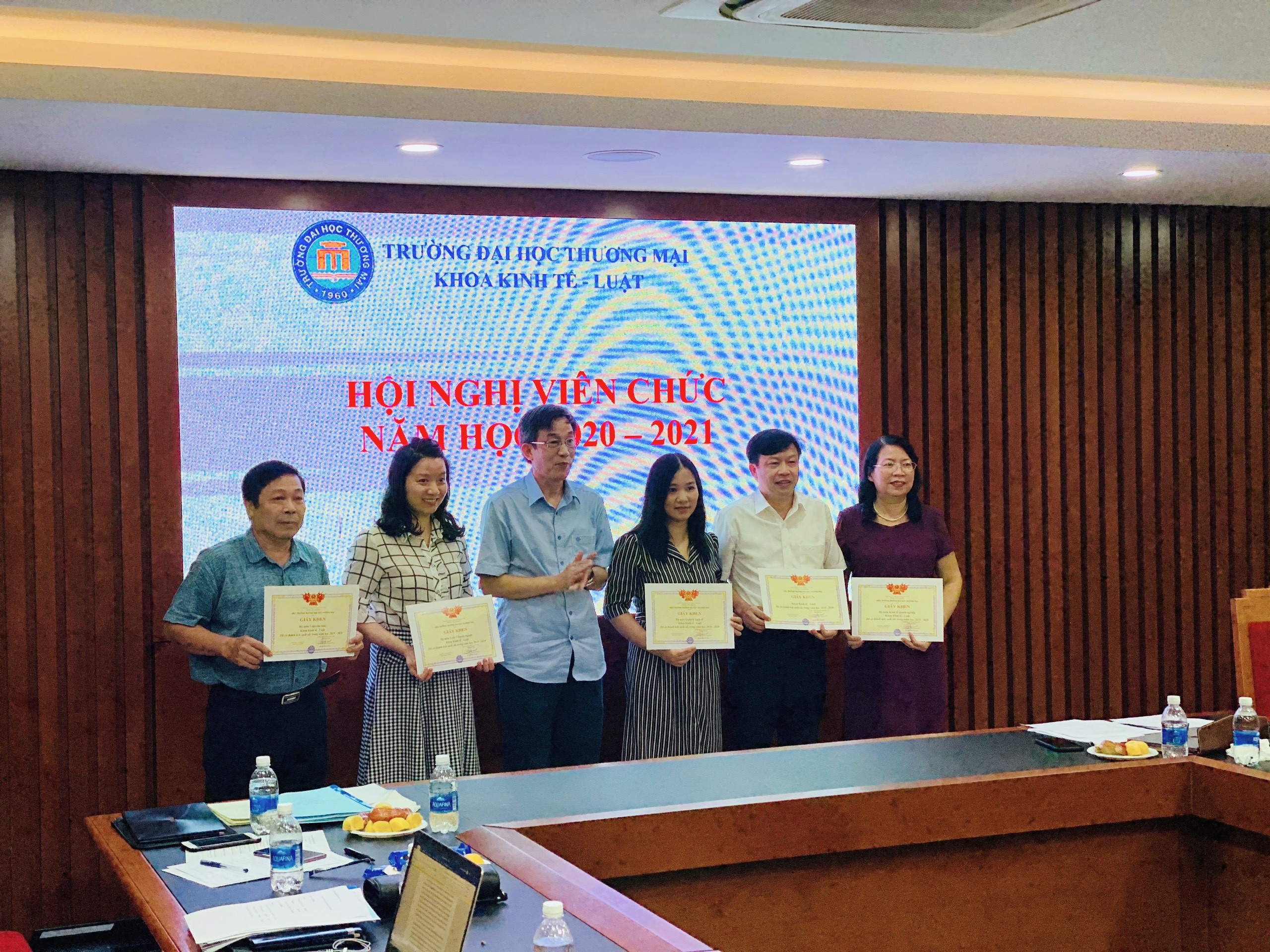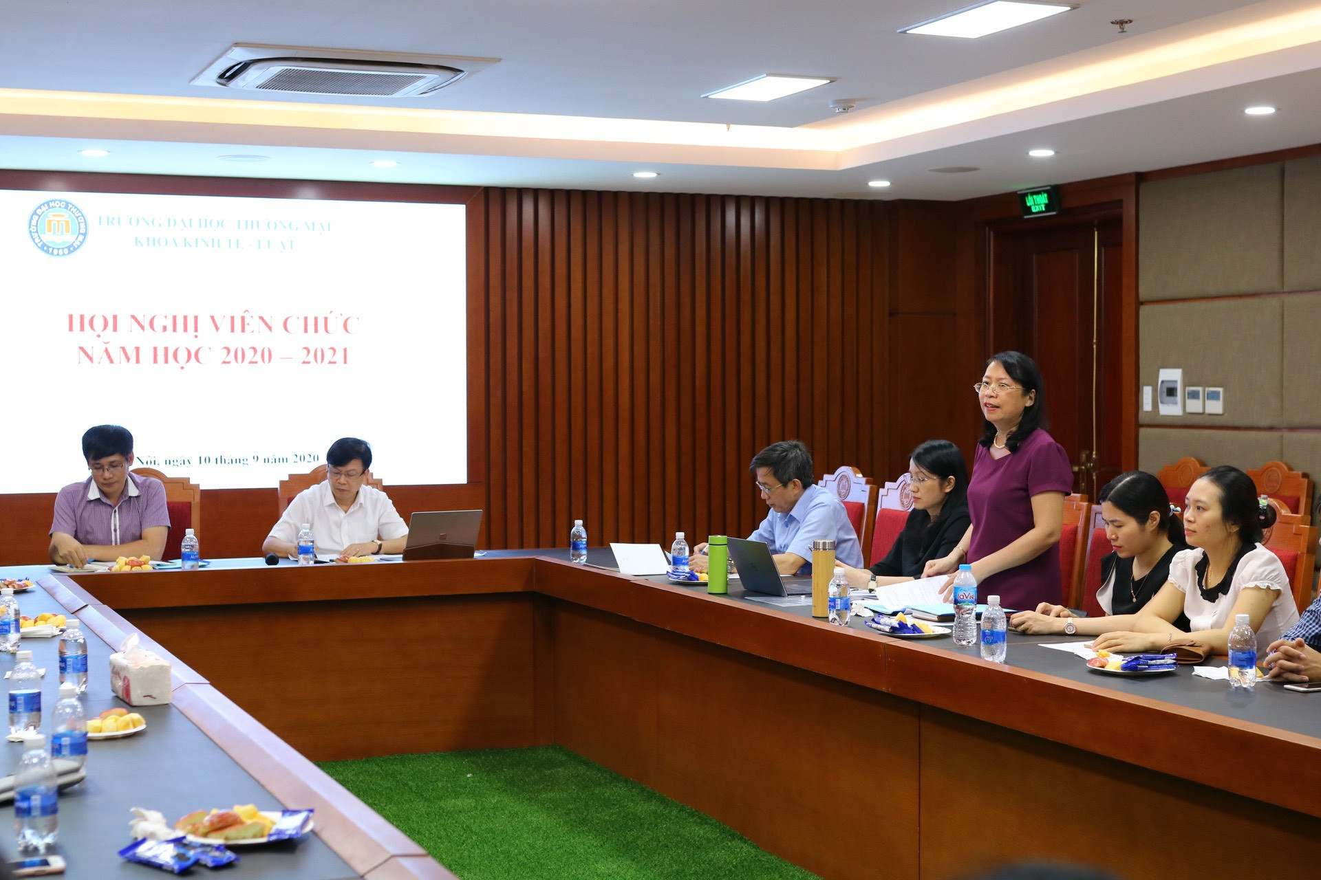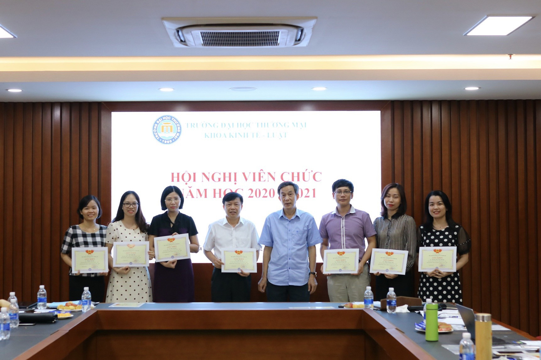 Thực hiện kế hoạch tổ chức hội nghị công chức, viên chức trường Đại học Thương mại năm học 2020-2021, theo kế hoạch số 621/KH-ĐHTM ngày 21/072020; được sự chỉ đạo của Đảng ủy, BGH nhà trường, vào hồi 14h00 ngày 10/09/2020 tại phòng họp số 2 nhà F, Khoa Kinh tế - Luật đã tổ chức Hội nghị cán bộ viên chức năm học 2020-2021.