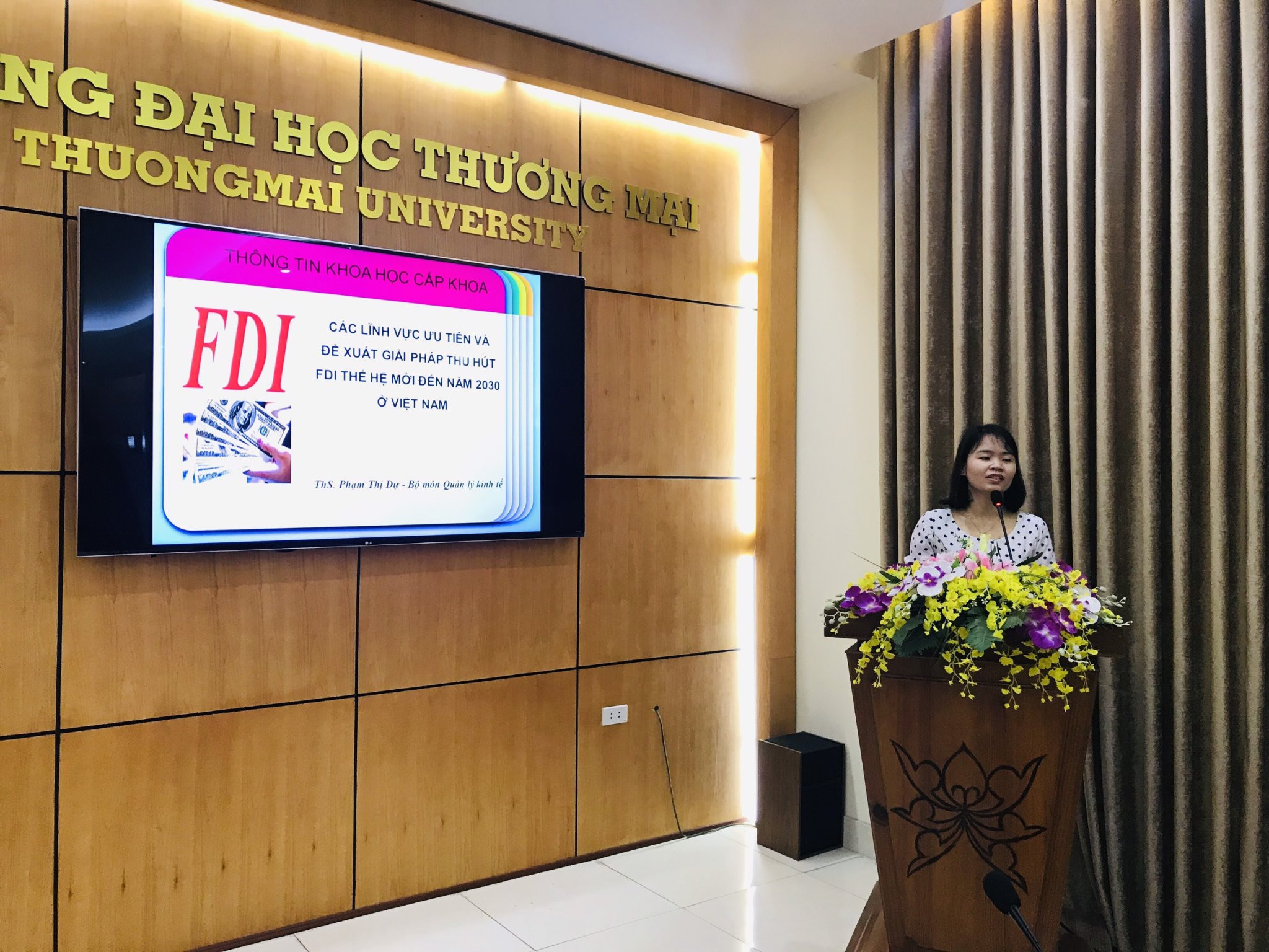 Hội nghị thông tin khoa học kỳ 2 năm học 2018 – 2019 được tổ chức với 2 phiên làm việc. Phiên làm việc thứ nhất với chủ đề với “Thu hút dòng vốn FDI thế hệ mới vào Việt Nam – Thực trạng và giải pháp trong bối cảnh hiện nay” có sự trình bày của 06 báo cáo. Phiên thứ 2 với sự tham gia trình bày của 02 báo cáo liên quan đến chủ đề “ Attracting FDI in Vietnam – Status and policies to attract foreign direct investment in Vietnam”.