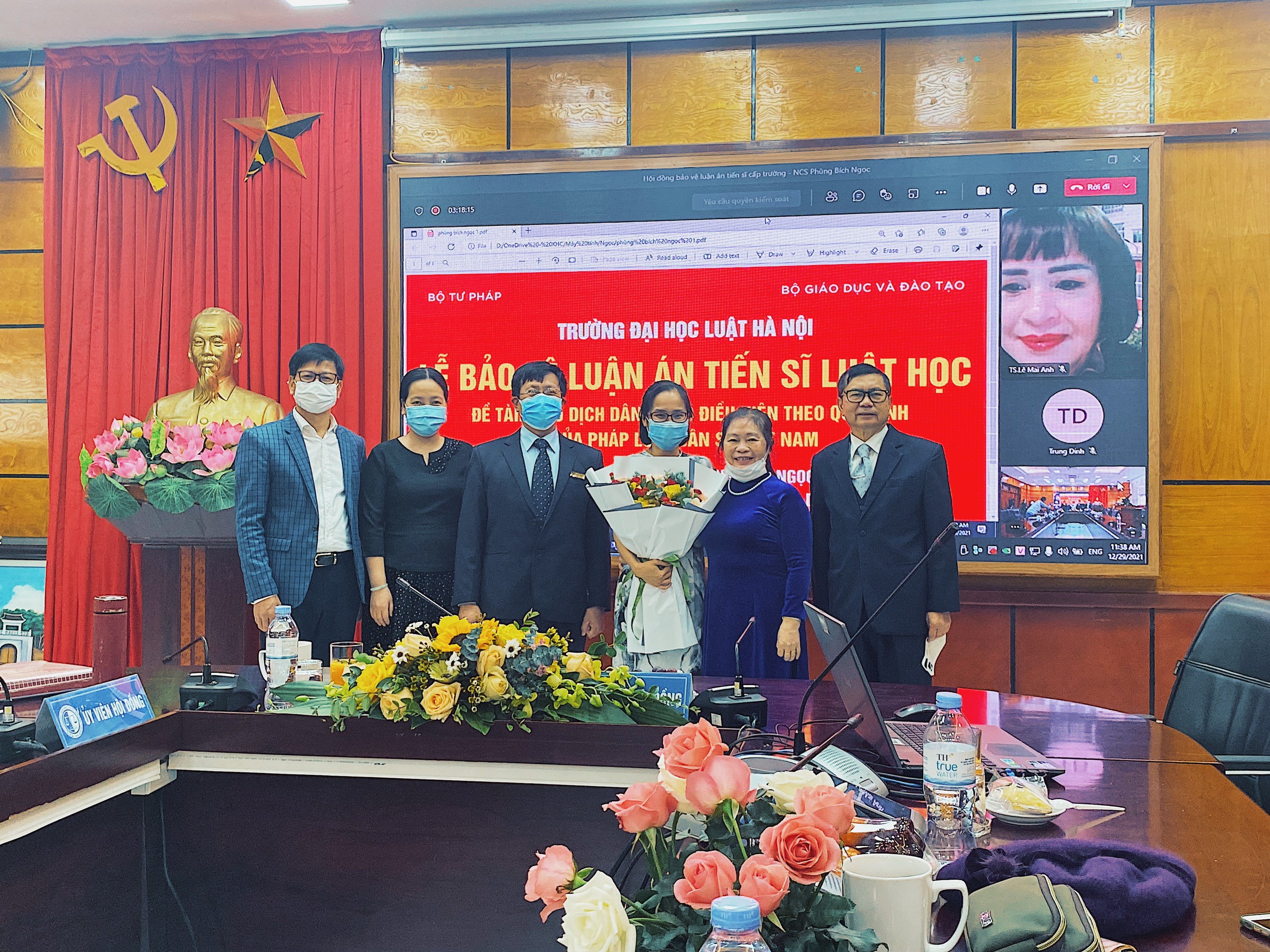 Ngày 29/12/2021, tại Trường Đại học Luật Hà Nội đã tổ chức Lễ bảo vệ Luận án tiến sĩ khoa học cấp trường cho nghiên cứu sinh (NCS) Phùng Bích Ngọc, Chuyên ngành: Luật Dân sự và Tố tụng dân sự. Mã số: 9 38 01 03 với Đề tài luận án: “Giao dịch dân sự có điều kiện theo quy định của pháp luật dân sự Việt Nam”.
