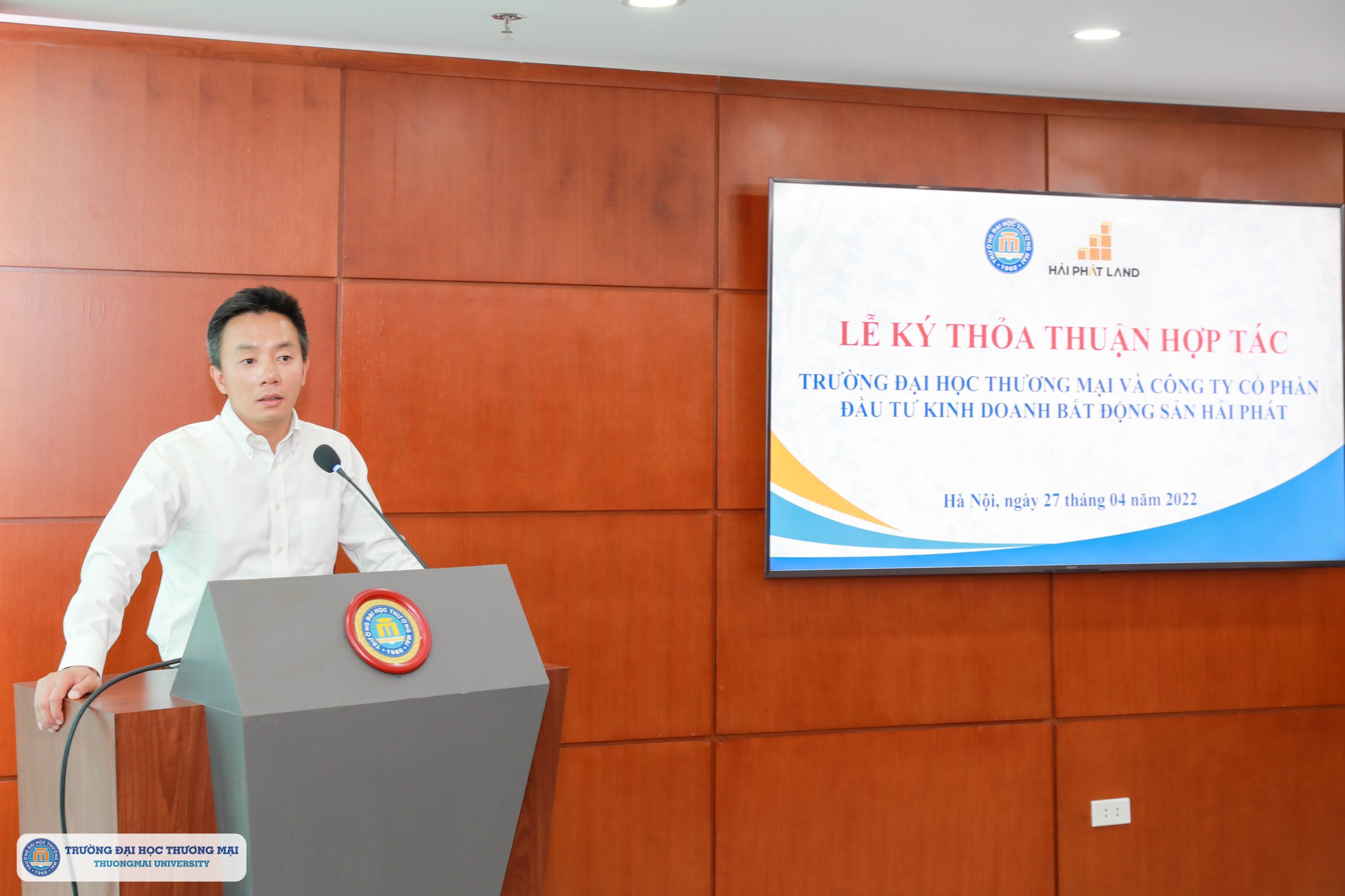 LỄ KÝ THOẢ THUẬN HỢP TÁC GIỮA TRƯỜNG ĐẠI HỌC THƯƠNG MẠI VÀ CÔNG TY CỔ PHẦN ĐẦU TƯ KINH DOANH BẤT ĐỘNG SẢN HẢI PHÁT