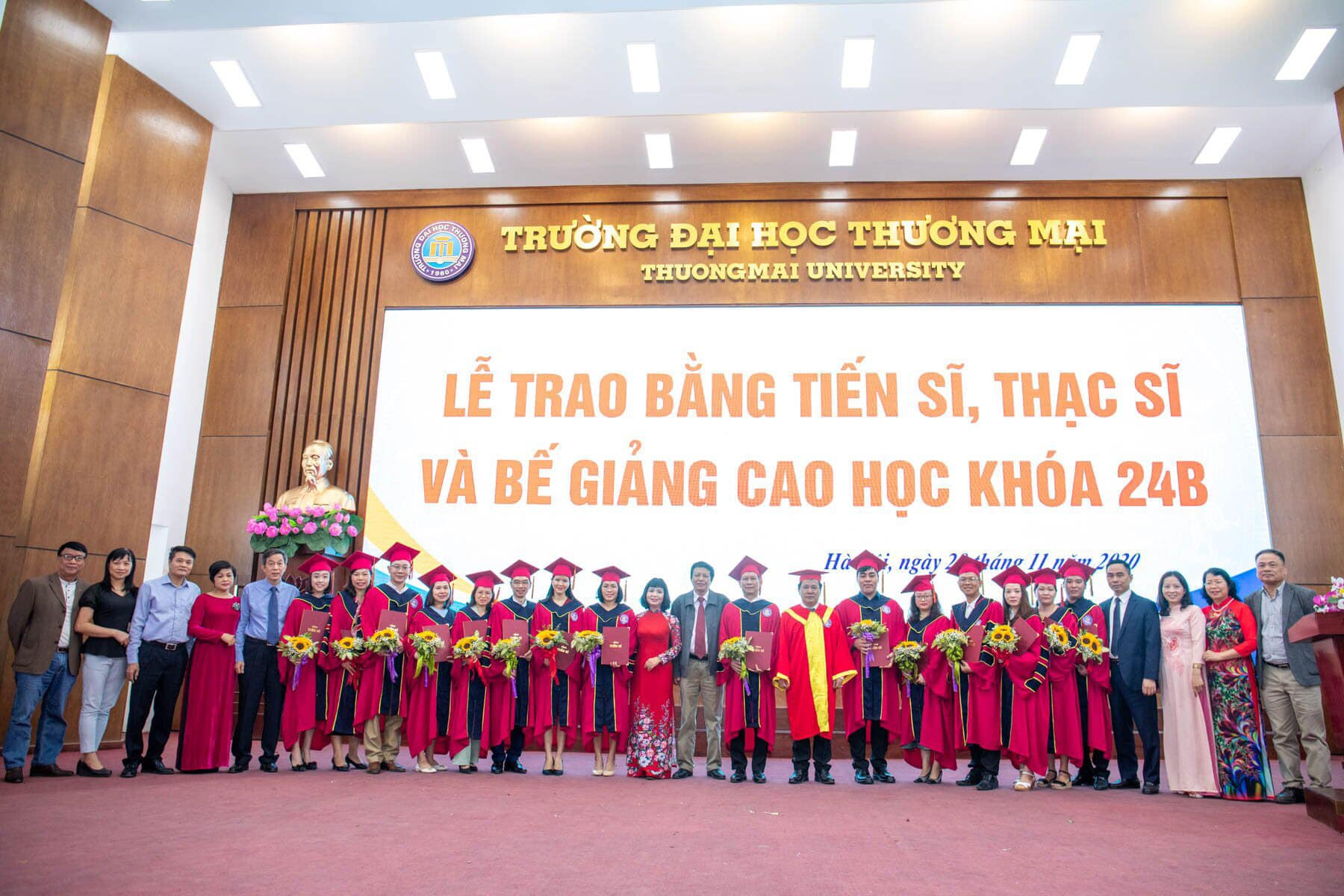 Sáng ngày 28/11/2020, trong không khí trang trọng, tươi vui và phấn khởi, tại Hội trường H1 – Trường Đại học Thương mại đã long trọng tổ chức “Lễ trao bằng tiến sĩ, thạc sĩ và bế giảng cao học khóa 24B”.
