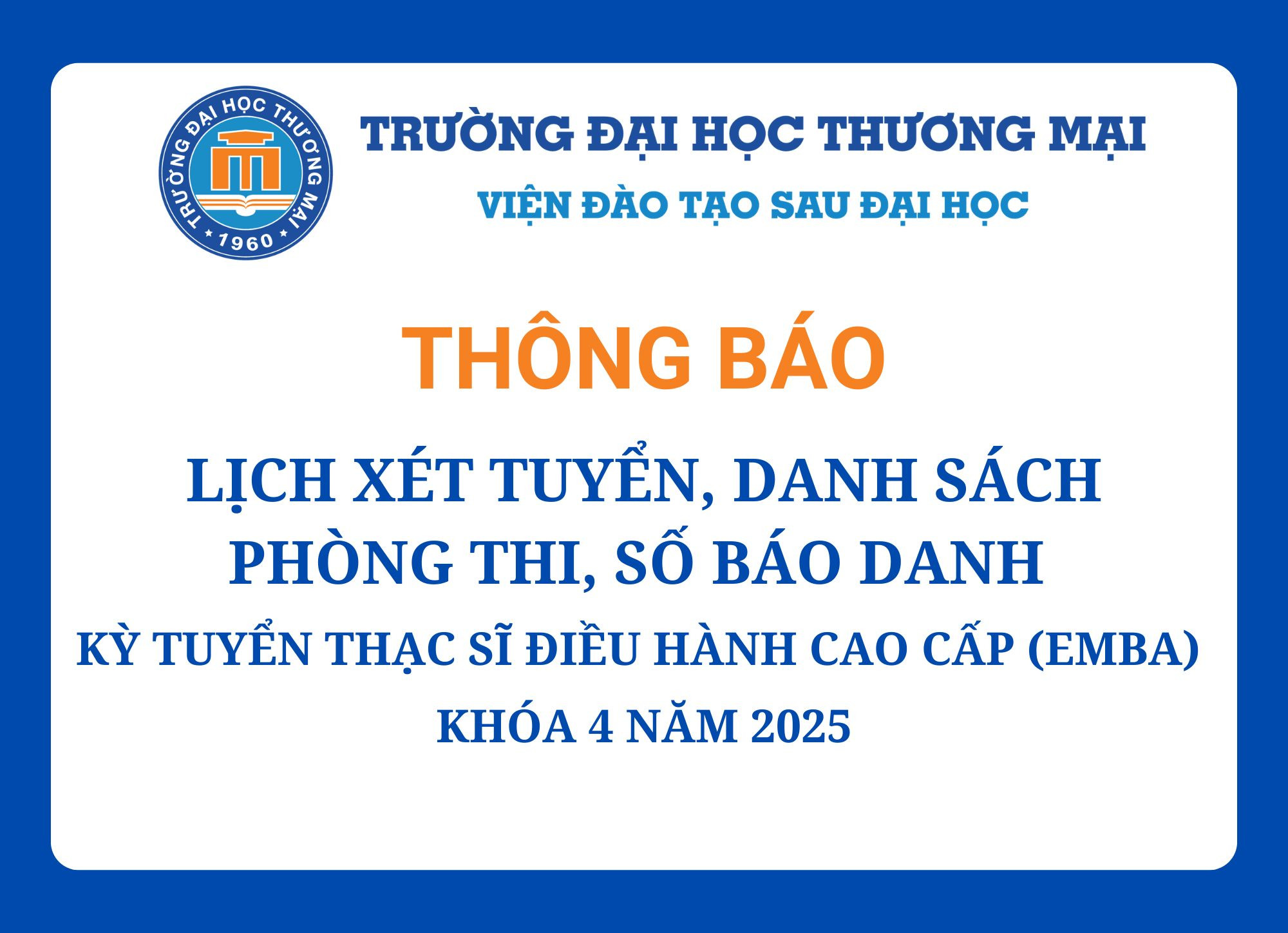 Lịch xét tuyển, danh sách phòng thi, số báo danh của thí sinh và một số lưu ý tại Kỳ tuyển sinh Thạc sĩ Điều hành cao cấp (EMBA) khóa 5 năm 2026