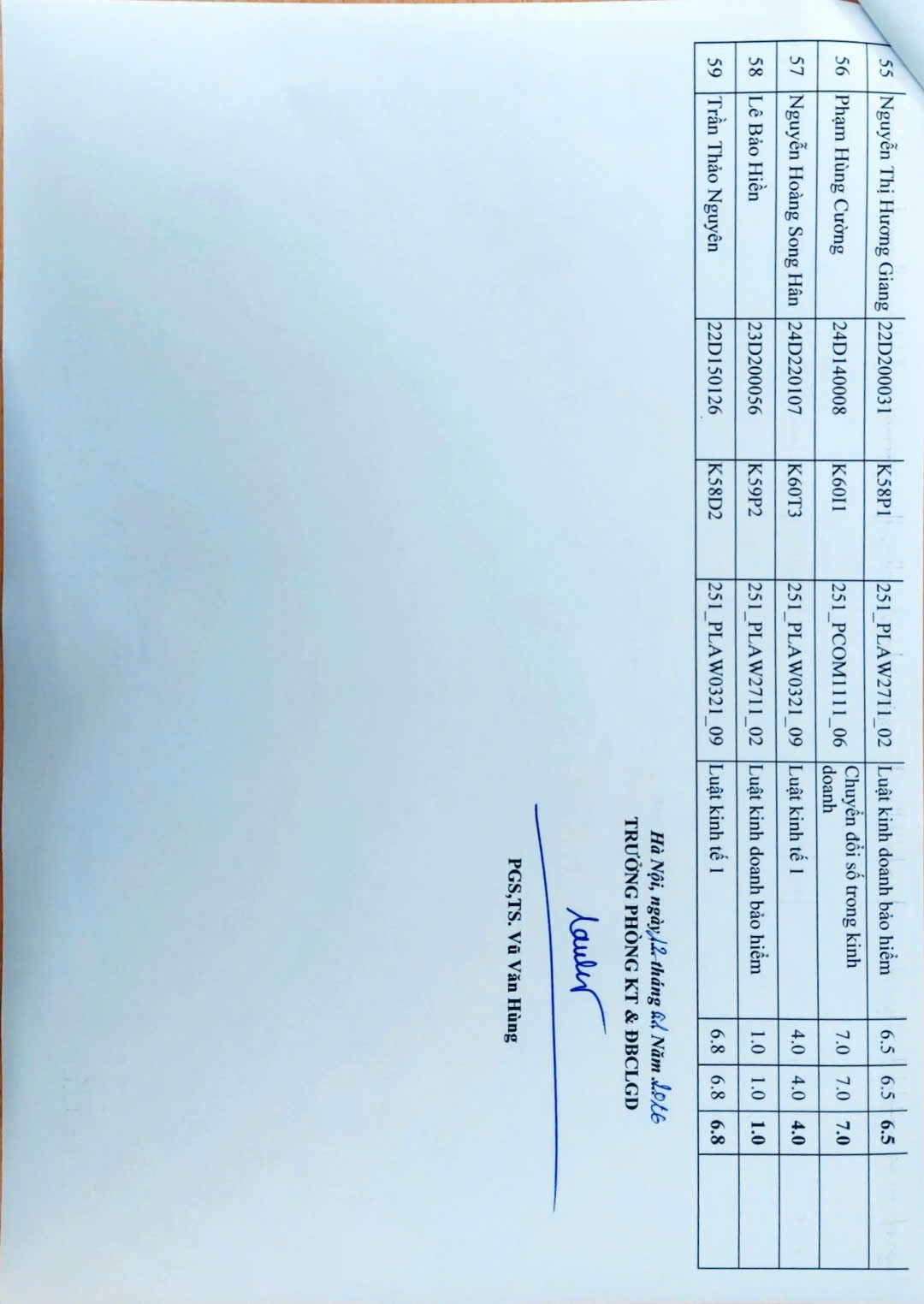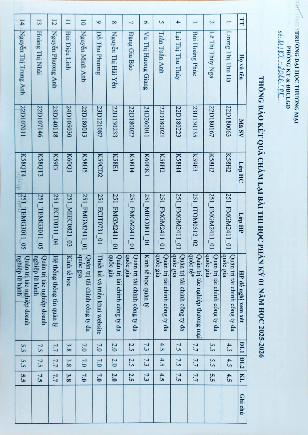 THÔNG BÁO KẾT QUẢ CHẤM LẠI BÀI THI HỌC PHẦN KỲ 01 NĂM HỌC 2025 - 2026 (TB số 11/KT)
