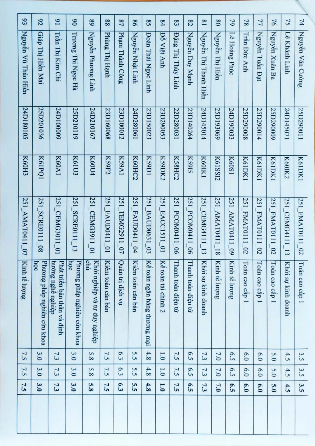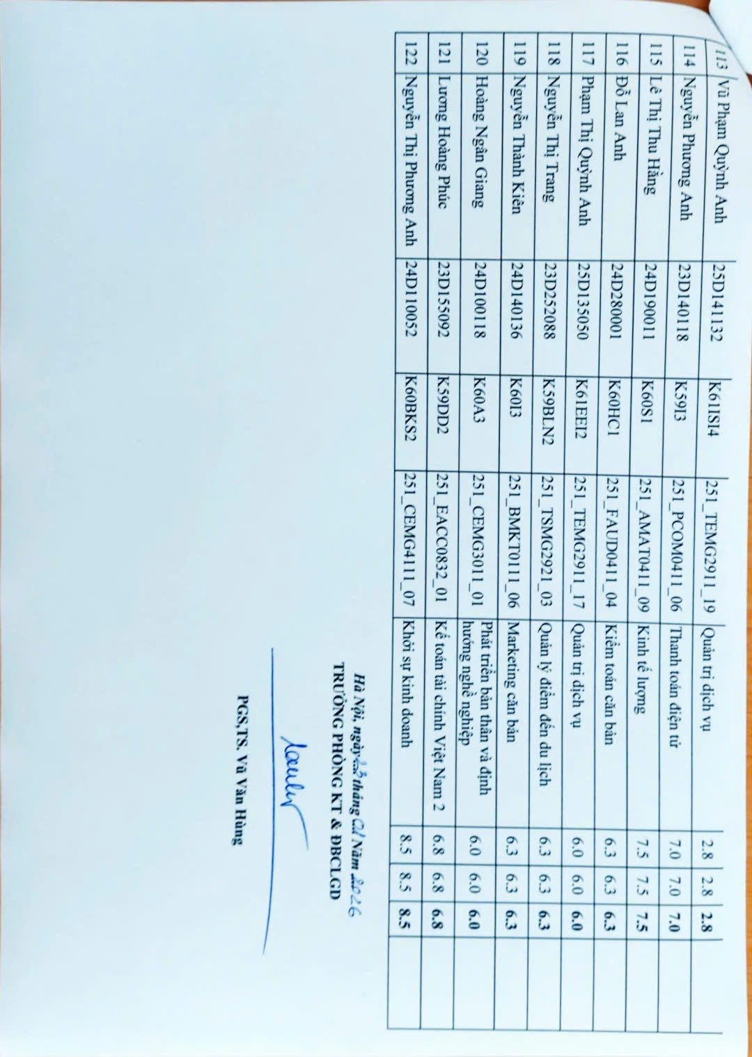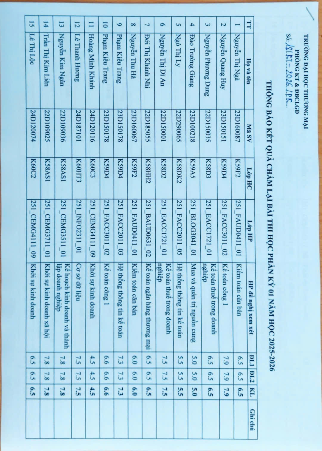 THÔNG BÁO KẾT QUẢ CHẤM LẠI BÀI THI HỌC PHẦN KỲ 01 NĂM HỌC 2025 - 2026 (TB số 18/KT)
