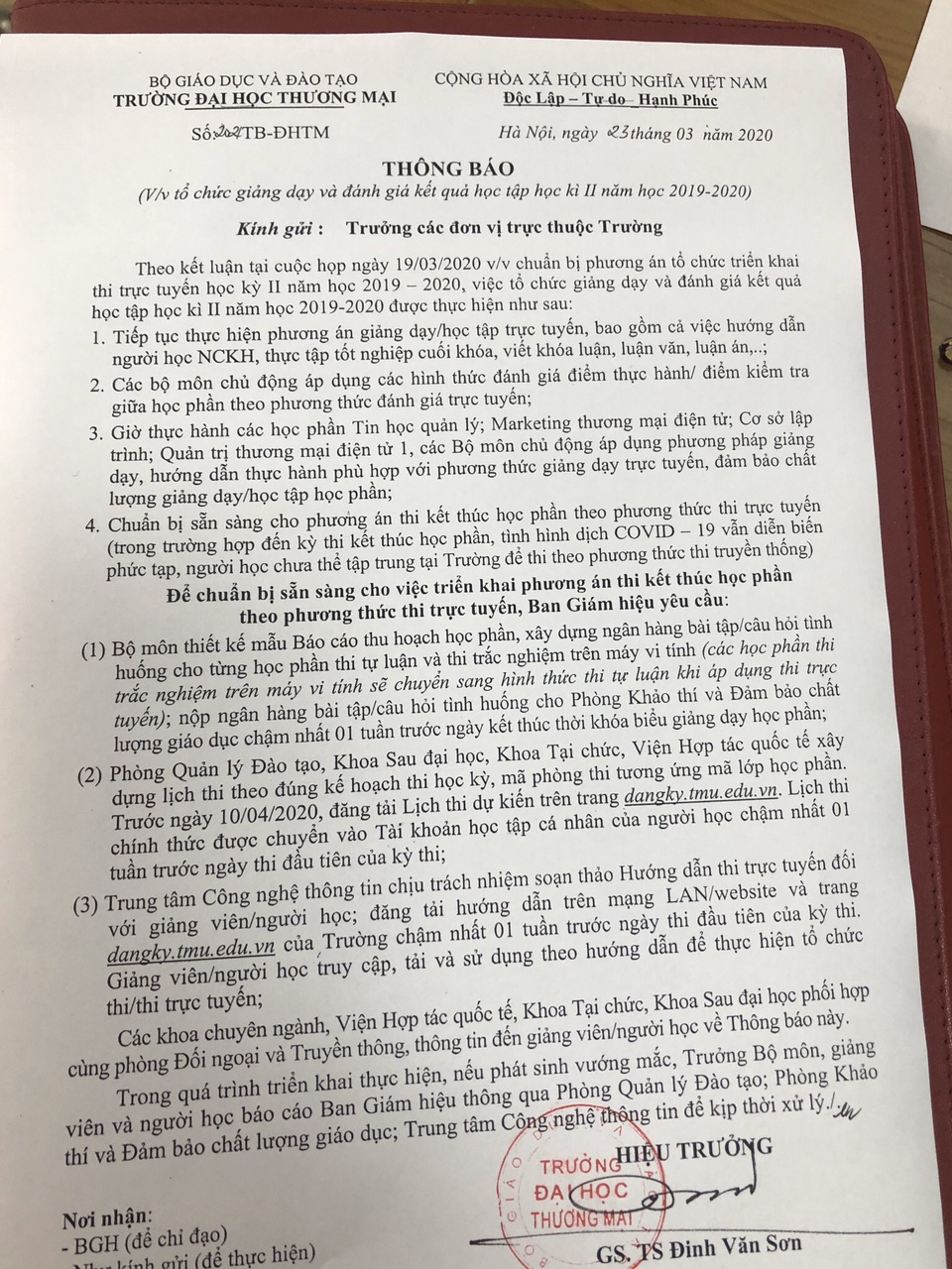 THÔNG BÁO(V/v tổ chức giảng dạy và đánh giá kết quả học tập học kỳ II năm học 2019-2020)