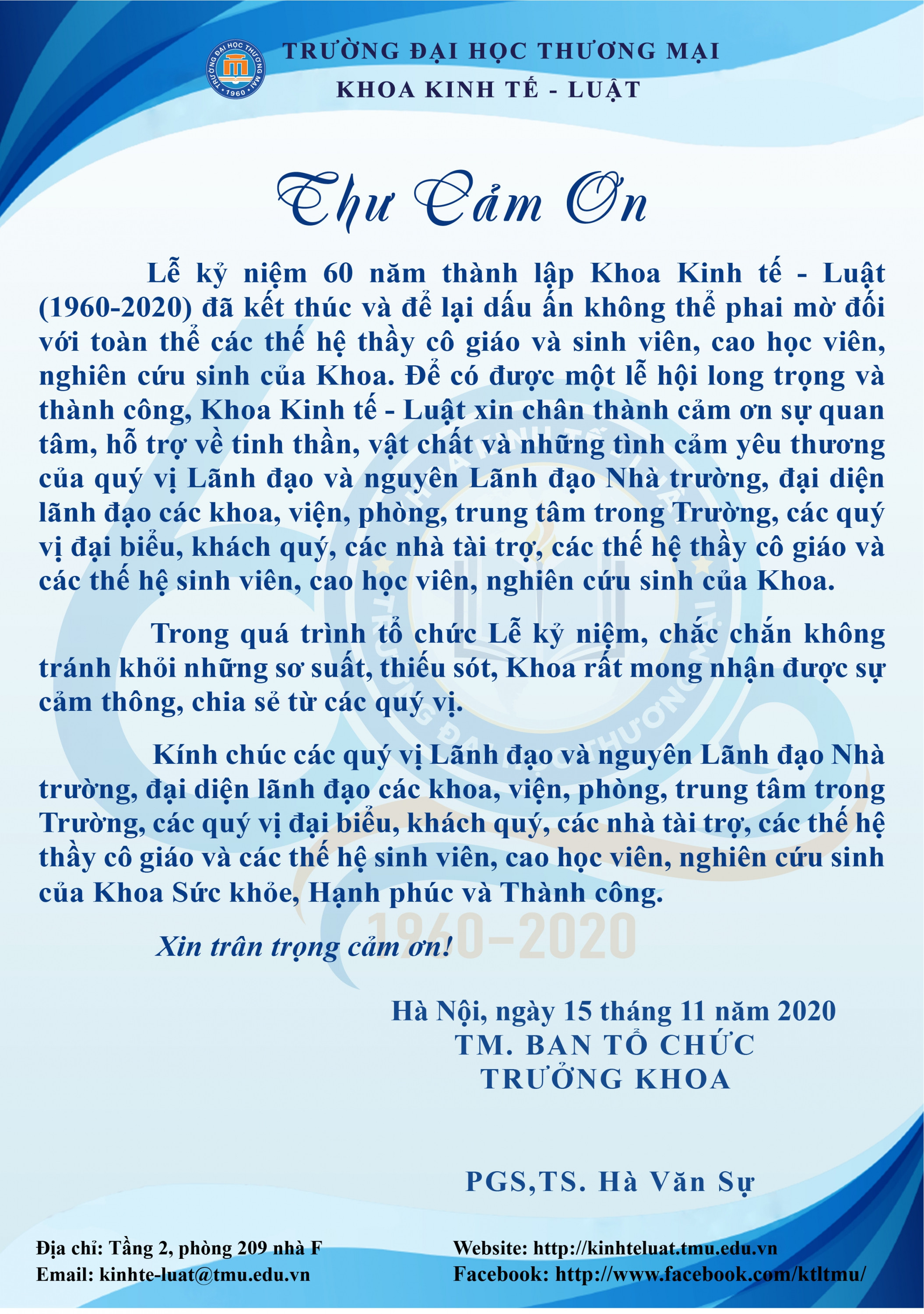 THƯ CẢM ƠN